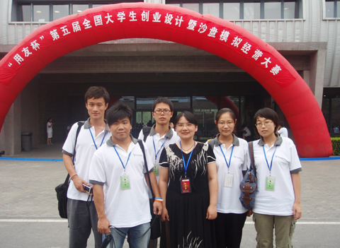 我院代表队由来自06级物流管理专业的刘伟伟(CEO)、白晶珺(财务总监)、杜祎斐(生产总监)、朱元琪(采购总监)和冯敏杰(营销总监)组成。他们经过了校内赛、南京市预选赛和江苏省决赛的层层选拔,在指导教师谈红的带领下成功地闯入了全国总决赛。为备战全国总决赛,同学们放弃了暑假的休息,留在烈日炎炎的南京,反反复复地讨论、设计、验证和修改比赛方案,以应对比赛中可能出现的各种情况。由于比赛的部分重要数据和规则在比赛前一天晚上才公布,因此同学们到达北京后,不顾舟车劳顿,立刻投入到比赛最终方案的论证之中,一直工作到深夜。