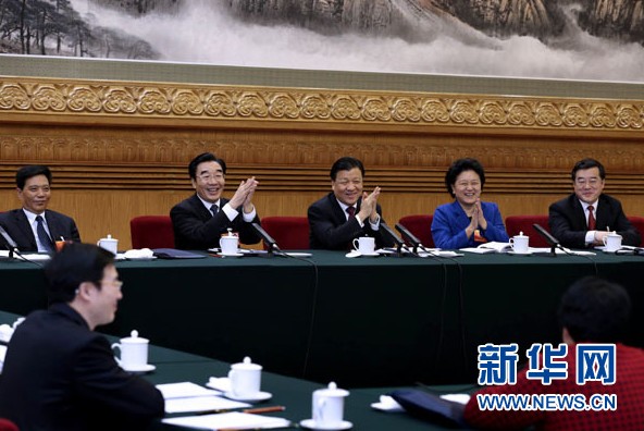 3月10日,中共中央政治局常委、中央书记处书记刘云山参加十二届全国人大一次会议河北代表团的审议。
