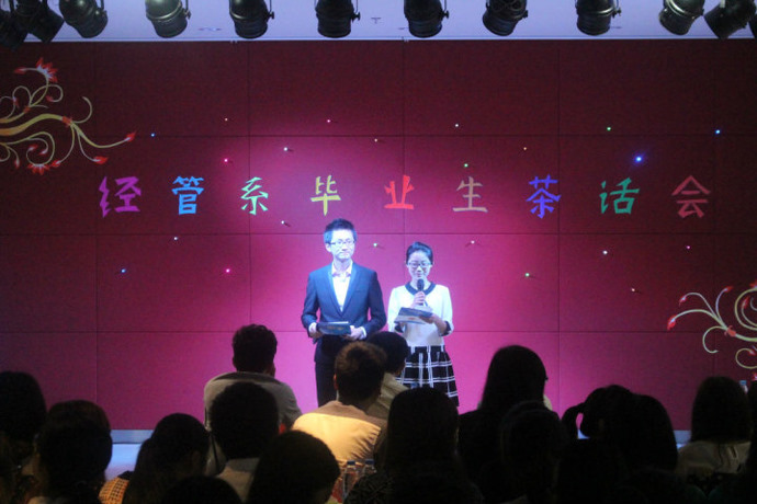5月19日晚18:30,由经济管理系分团委、学生会举办的“经管系2014届毕业生茶话会”在大学生活动中心307圆满落幕。本场晚会邀请的嘉宾有经管系党总支书记黄苏宁老师,经管系综合办主任李清源老师,经管系分团委书记程希羲老师,10级辅导员李桂清老师、步春媛老师、肖舒匀老师、李睿宸老师,11级辅导员徐小瑛老师、温亚丽老师、苏珍晶老师,12级辅导员张丽老师、栾昕漪老师,13级辅导员邵译萱老师、李洪全老师。
