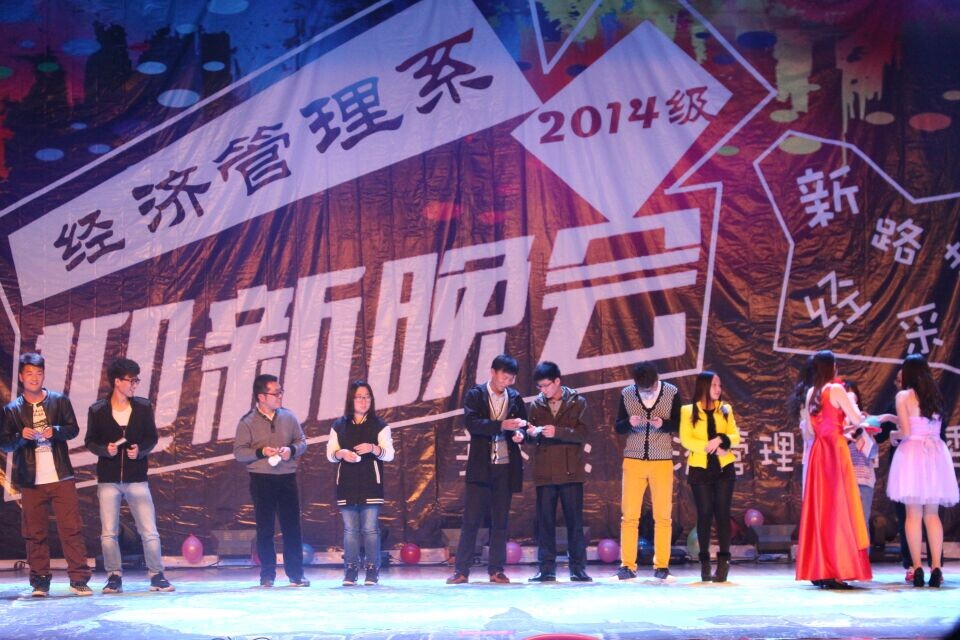 2014年11月10日晚 6时,由经管系分团委学生会举办的2014级经济管理系迎新生晚会圆满落幕。出席本场晚会的嘉宾有经济管理系党总支书记黄苏宁老师,综合班主任李清源老师,分团委书记程希羲老师,以及经济管理系各专业辅导员老师们。同时金陵学院商学院、滨江学院花旗营校区、滨江学院会计系的主要学生干部,本校院系主要学生干部也应邀参加。