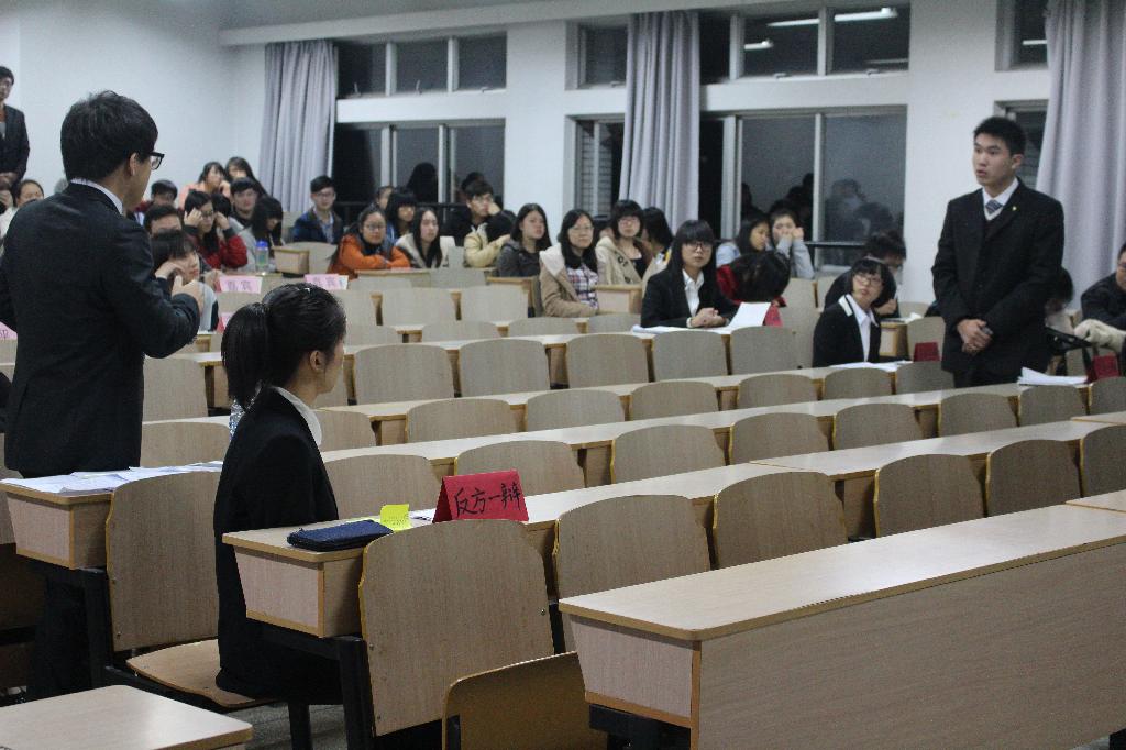 11月20号晚六时,由经管系学习实践部举办的“学信杯”辩论赛在文昌院403成功开展。本次辩论赛邀请东南大学成贤学院校辩论队队长、化工与制药工程系辩论队队长代钰,校辩论队主力陈体扬,校辩论队主力、经管系辩论队队长钱惠盈担任评委。邀请东南大学成贤学院经济管理系辅导员姚明辉老师、机械工程建筑与艺术系学生会主席曹辰、经管系学生会主席邢栋、副主席张鑫,经济管理系分团委副书记张明波作为嘉宾。
