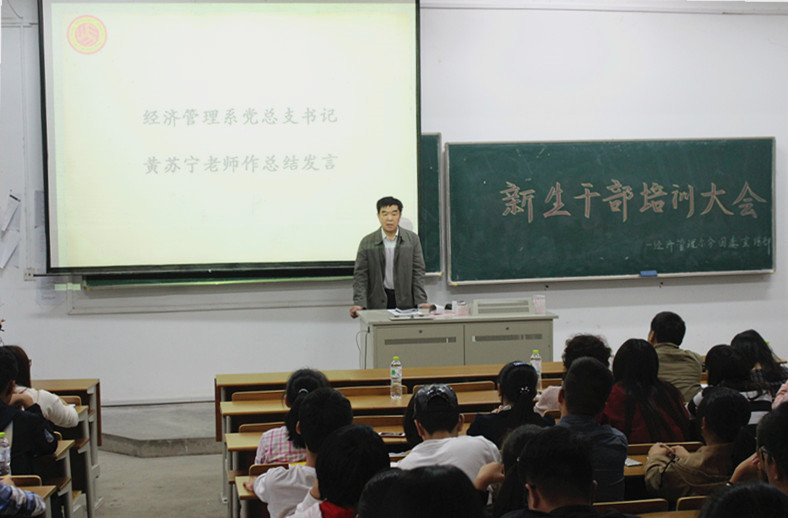 2015年10月22日,我院经济管理系15级新生干部培训大会在成贤院114顺利举办。出席本次大会的嘉宾有:经济管理系党总支书记黄苏宁老师、系综合办主任李清源老师、分团委书记程希羲老师以及各专业辅导员。