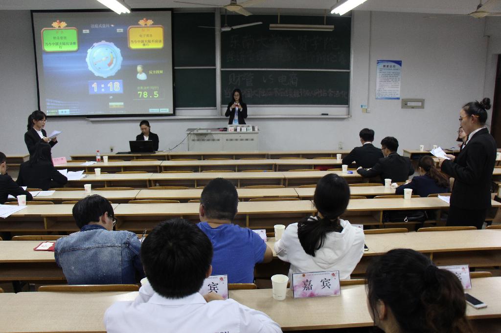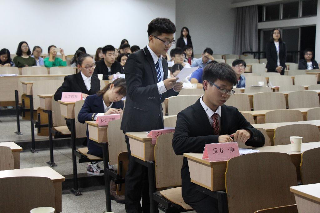 此次辩论赛的主题是“当今中国大陆应不应该推行成人网站合法化”。正方财务管理队的观点是目前成人网站屡禁不止,我们必须填补法律的空隙,只有在确定成人网站的合法地位后,把成人网站放到台面上,才能通过法律从网站经营和用户信息登记两大方面,对其实行监管,使其能健康发挥满足成年人正常的性幻想的生理心理需求的作用。反方电子商务队则持着相反的观点,认为成人网站的合法化会为对未成年人造成极其不良的影响。双方辩手唇枪舌剑,毫不退让,赢得了在场观众的一次又一次掌声。最终,电子商务队获胜,财务管理队二辩荣获最佳辩手。