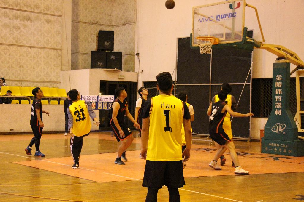 热身完毕后,裁判老师哨声一响,双方开始争球。虽然会计队的18号单打能力很强,但是物流队不急不躁,步步紧逼,最后在第一节比赛结束时,由物流队暂时领先。紧接着第二节比赛一开始,物流队的1号和31号连连三分进球,将两队比分差距拉开。中场的时候是拉拉队冠军国贸拉拉队带来的表演。第三节会计队依旧斗志昂扬,连连追分,眼看比分就要拉平,但是,物流队防守如铁塔,最终物流队1号两罚命中,以65:59锁定了胜局,赢得了冠军,而这也是物流的四连冠!